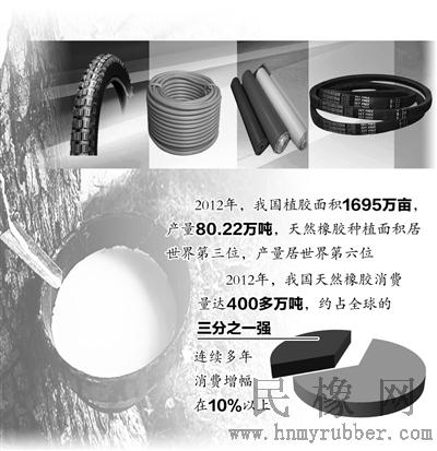 我国是天然橡胶消费大国。去年,我国天然橡胶消费量高达400多万吨,约占全球的三分之一强,连续多年消费增幅在10%以上。近年来,市场上天然橡胶价格波动频繁,在一定程度上影响着我国天然橡胶的稳定供给。随着社会经济发展,我国对天然橡胶需求量不断攀升,稳定发展我国的天然橡胶产业具有重大意义。