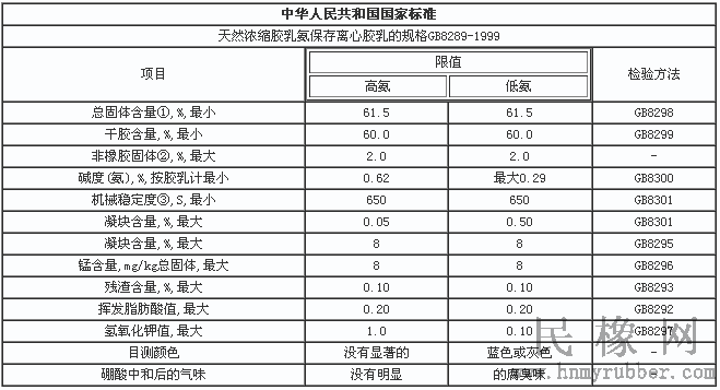 三、浓缩乳胶的质量检测乳胶各项技术指标,平均总固形物61.5%,干胶含量60.2%,总固形物与干胶差1.3%,氨含量0.72%,挥发脂肪酸值0.04%,机械稳定性650秒,乳白色、无腐败臭味。