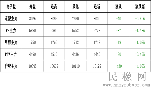 能源化工期货产品跌势对比表 (数据来源:文华财经)