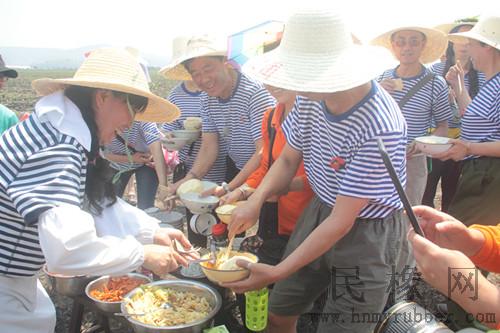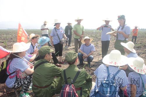知青们首先来到凤凰生产队第二居民组旁的甘蔗地里。甘蔗地里彩旗飘飘,歌声阵阵,一切都像当年促生产、大会战时,知青们分成了17个班,到甘蔗地里挖沟、水稻田里薅秧。大家领到劳动工具后,干劲十足的开始干活。收工时,有专人读报、大家还开始拉歌、响亮的歌声此起彼伏,有个班的知青还踏着回访团童团长吹奏的萨克斯音乐在田间跳起了忠字舞。接着,开饭时间到了,像当年一样,大家排队打饭,大馒头,酸菜汤、炒莲花白,糟辣子,大家吃得津津有味,热辣辣的太阳,也阻止不了大家重温当年劳动场景的热情。