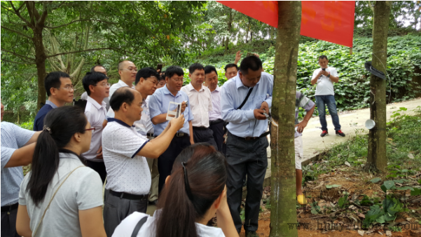 10月24日-25日,由广东省农垦总局组织的电动胶刀试割演示在阳江农垦局红五月农场和茂名农垦局火星农场举行。在演示现场,橡胶研究所所设计的电动胶刀可以在6秒左右完成割胶,其割胶效率引起参会者和生产部门的极大兴趣。双方协商在2017年开展生产性大田试割实验。