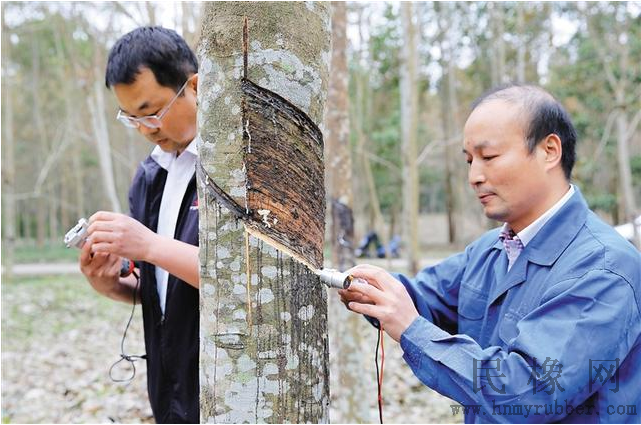 其实早在2014年初,中国热带农业科学院橡胶研究所团队就开始研究开发电动割胶刀,并且申请了国家专利,经过了2年的研究及改进相关技术基础已经扎实。2015年11月所研发的便携式旋切和旋割两款电动割胶刀在割胶技术上取得重大的突破。不仅有对于割面设有特别的保护装置,可以将耗皮量控制在1.5-3.0毫米范围以内,同时胶刀重量只有400克便于胶工操作。实验结果显示,一名胶工可以在一个上午收割800-900株橡胶树,不仅减低了胶工技术对胶树的影响,而且产量总量也有着10%的提升。