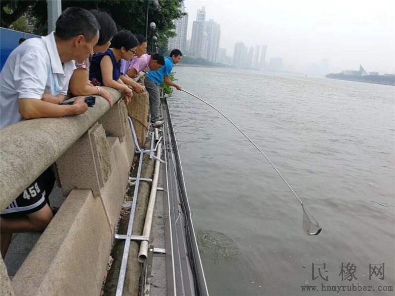 一会捞一条,一会捞几条,这个男人正在珠江边用长杆小网捞鱼,不一会就捞了二十几条……