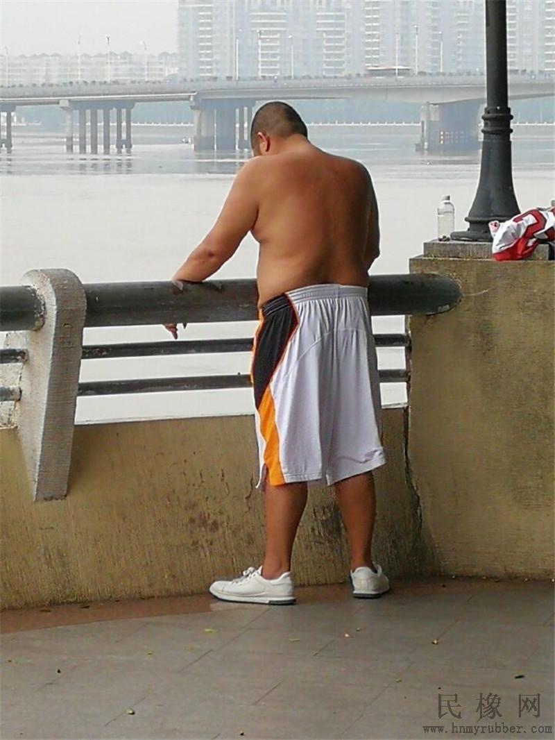 男人大多是丑的,有气度者除外,图中的老男人,不停地用“啤酒肚”撞击护栏, 不知是在享受,还是“去库存”……