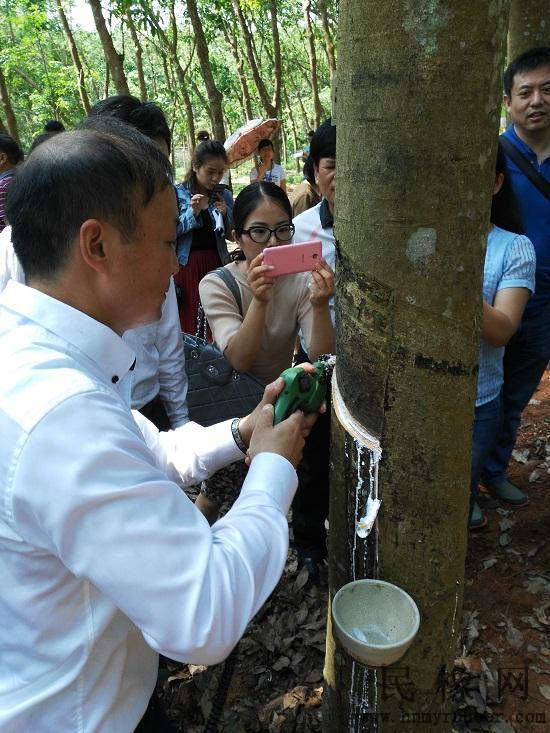 3、有了电动胶刀,大胶园只要请一名高级割胶技工就行了,工作就是对橡胶树的首次开线和日常管理。
