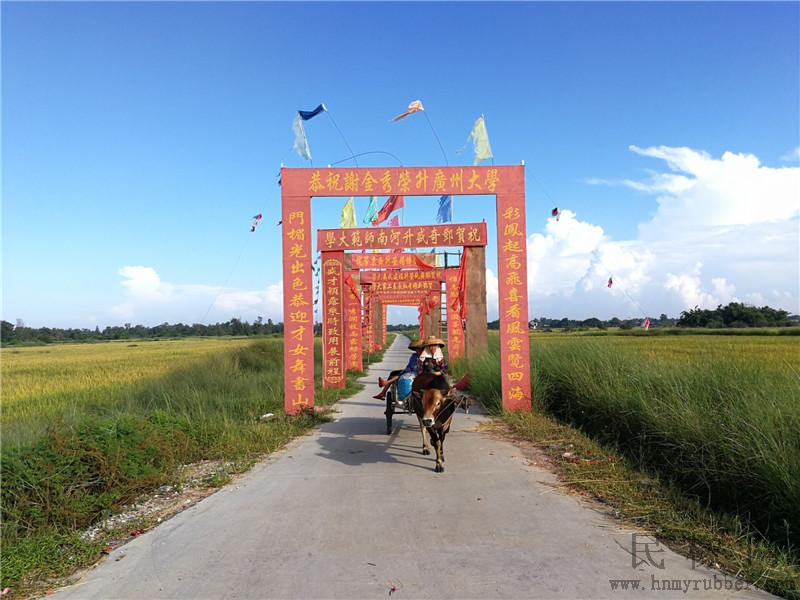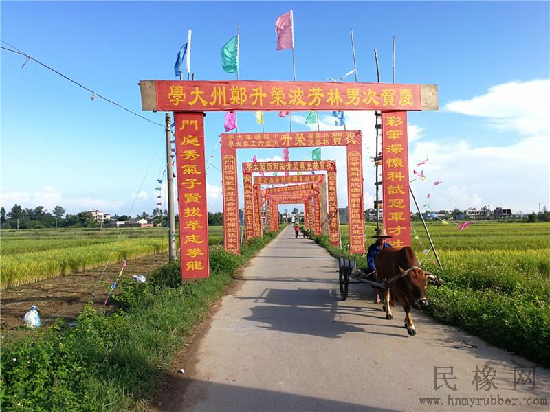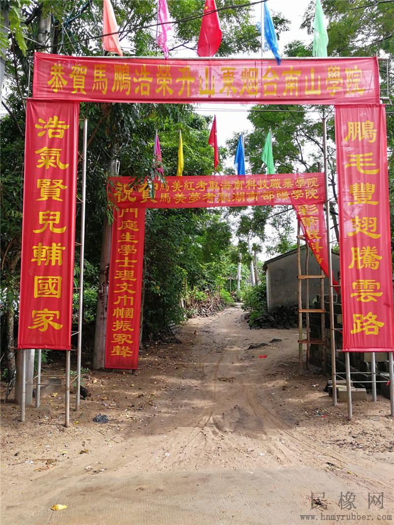 每个村庄只要有子弟考上大学,不管是不是名牌大学,都会在村口干道上用鲜红绸布做个简易的大门牌坊,上面彩旗飘扬!