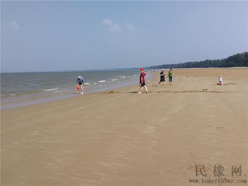 这个“银滩”刚好处在临高和儋州交界的海岸上,站在儋州光村银滩海边,可远远看到临高新盈镇的轮廓,“银滩”上人很少,没什么值得点赞的,让我意外的是看到了几个外国人,玩的很尽兴! 偶尔也看到一些吃饱了撑的人开车掠过此地。