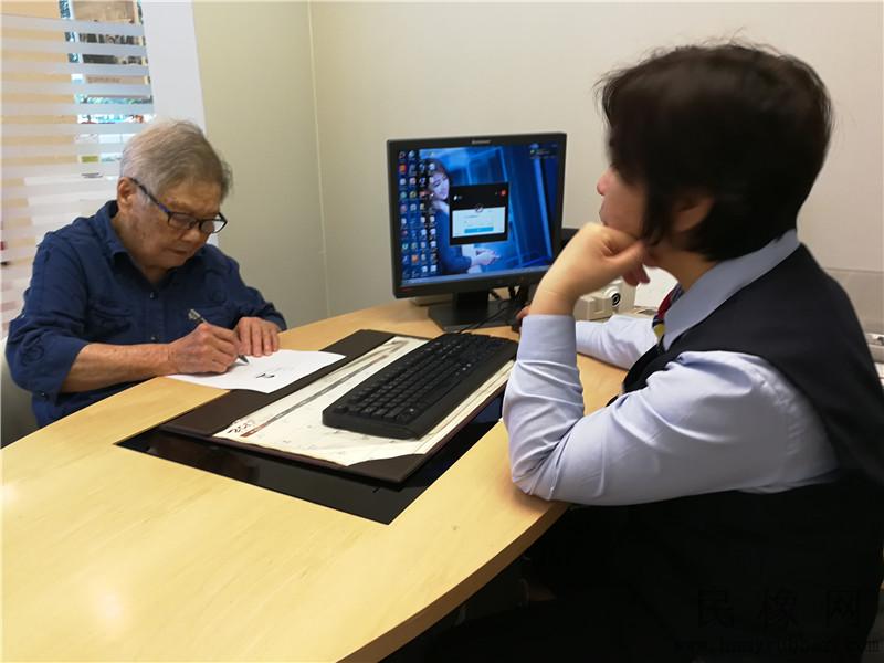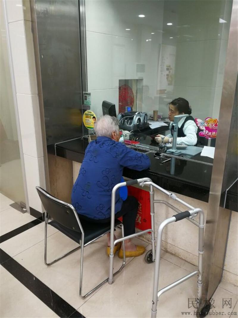 老太太是广铁职工,单位告知 : 2018起要到银行确认身份后才能领养老金了(证明是否还活着),这是大事,老人早早就来到银行!