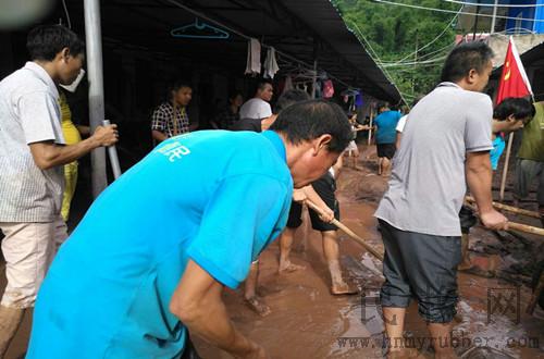 8月9日下午,一场疾风骤雨过后,勐捧农场三分场一队发生泥石流自然灾害,街道和居民家中灌进泥水。接到生产队负责人及客户打来的求助电话后,勐捧第一制胶厂迅速召集精干力量,组成12人的救援队,出动一台小型铲车参与抢险救灾。