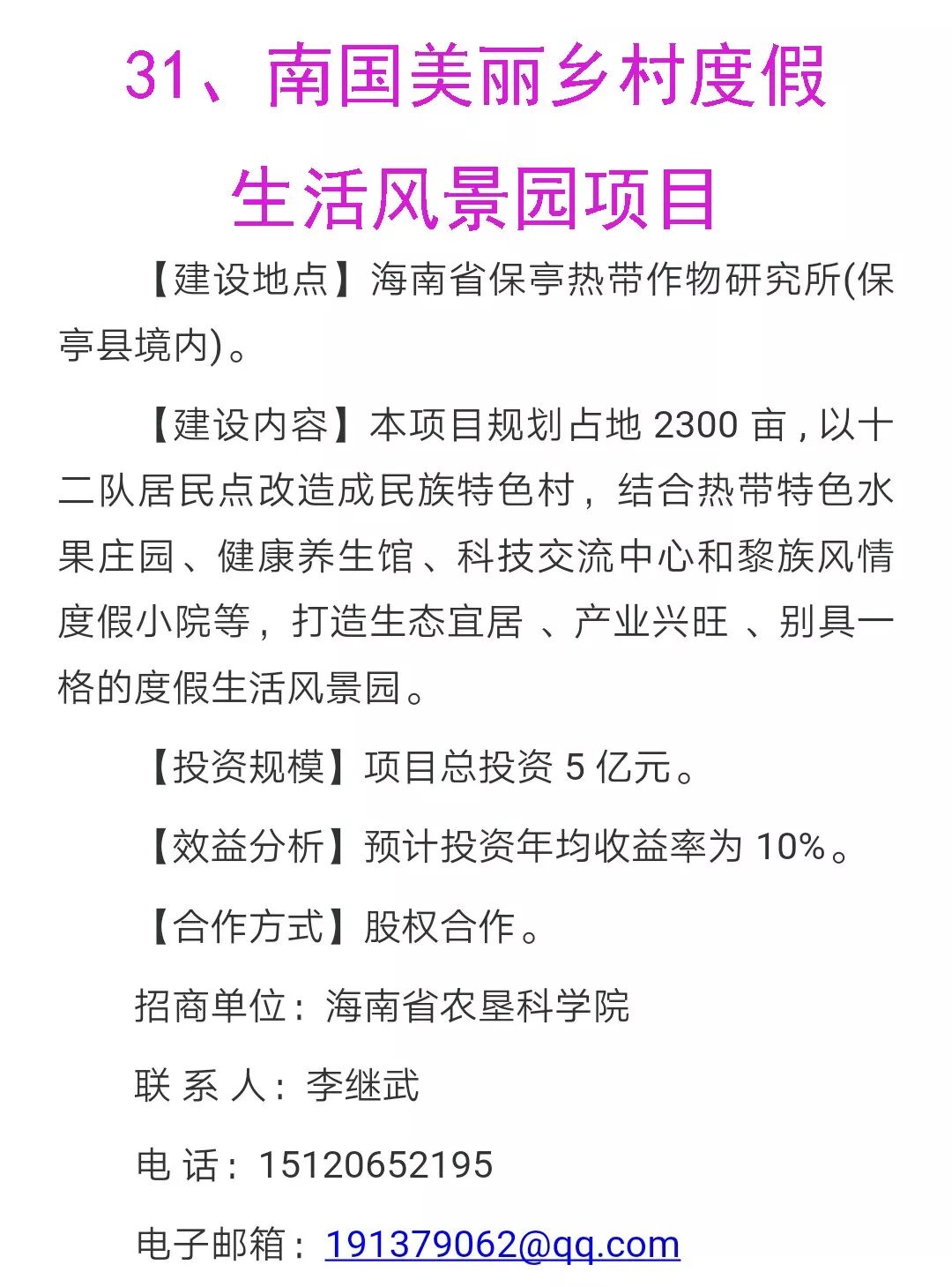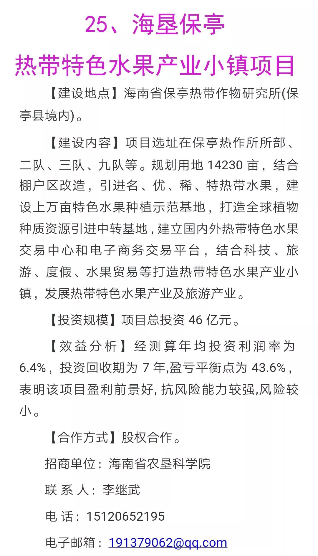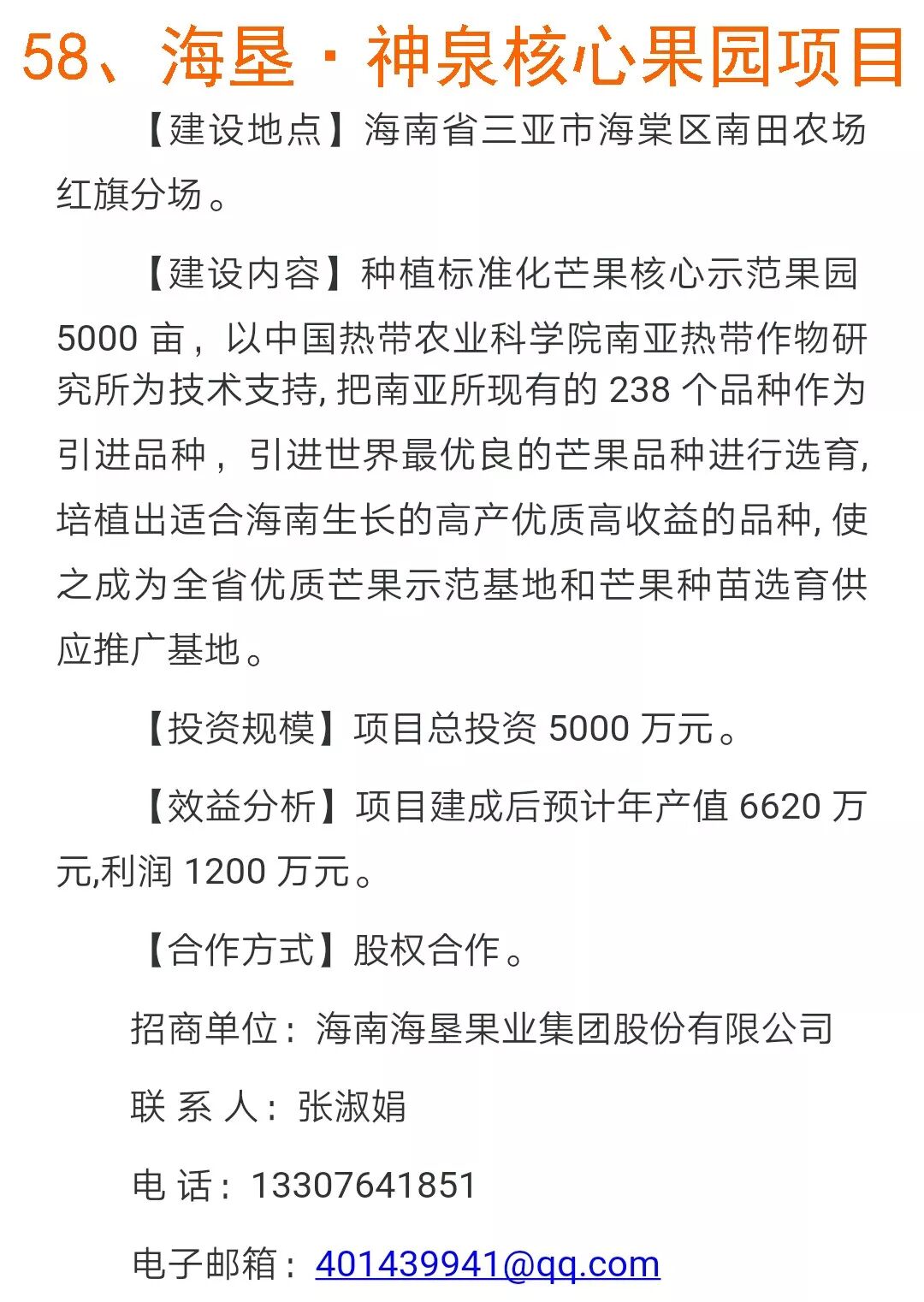 四、热带高效农业项目