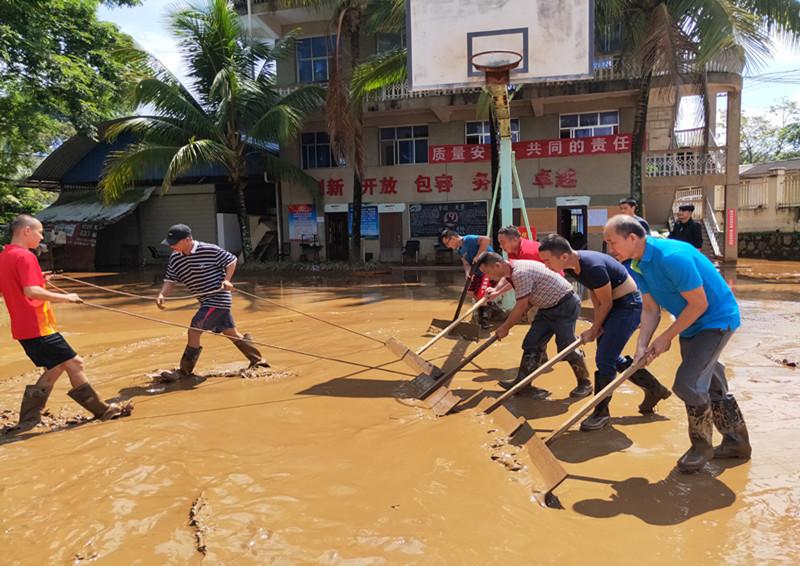 大雨过后,景阳公司领导十分重视和关注景洪二胶厂的灾情,公司党委委员、副总经理李派华第一时间打电话询问胶厂灾情,得知又一次发生洪灾的不幸消息时,休假的副总经理李派华及时赶到现场,承担总指挥,并调集景洪第一制胶厂、东风第一制胶厂、东风第二制胶厂20余名员工第一时间赶赴景洪第二制胶厂帮助清理淤泥,召集中四个胶厂的电工师傅抢修机器设备。在公司领导的协调下,景洪绿恒机械设备有限公司也派出专人赶赴现场帮助胶厂抢修机器。在此期间,公司总经理邓文华因值班刚刚到达勐腊片区制胶厂,第一时间安排办公室徐小平到场协助指挥抗洪抢险;云胶集团党委书记宁顺良在得知汛情后及时来电部署安排,并对战斗在抗洪抢险第一线的全体员工表示慰问,对受灾情况及时听取汇报。
