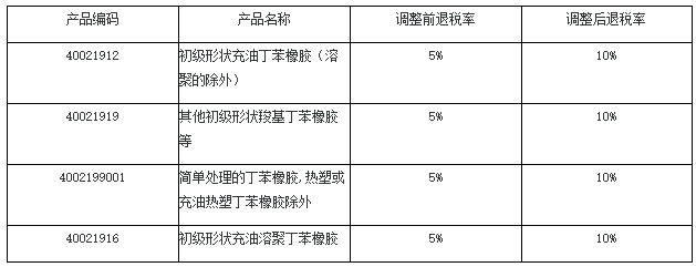 部分丁苯橡胶产品增值税出口退税率调整对比