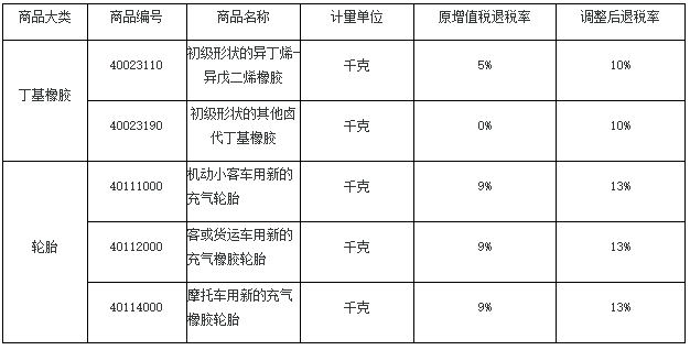 丁基橡胶和轮胎出口退税率对比表1