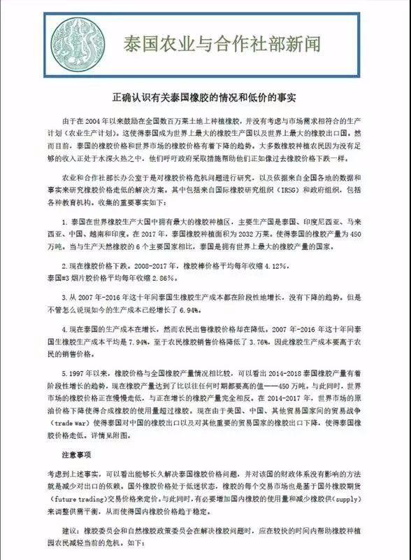 近来,面对天然橡胶低迷的行情,泰国农业与合作社部于11月21日发布公告,正确认识有关泰国橡胶的情况及低价的事实。
