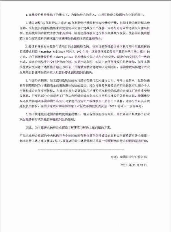 公告指出,泰国是目前全球最大的天然橡胶生产国之一,面临持续低迷的天然橡胶行情,应当采取适当的措施。