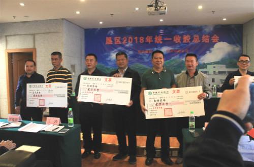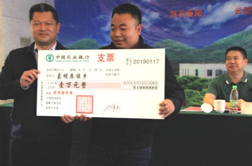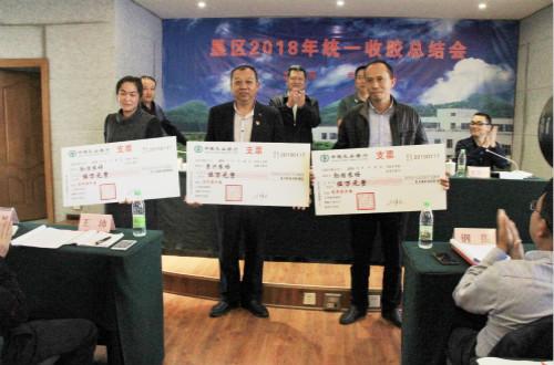 景阳公司为象明乡、景洪农场等8个单位颁发了“公司+基地+农户”合作示范点奖励金和优秀、最佳统一收胶合作单位合作返补金。