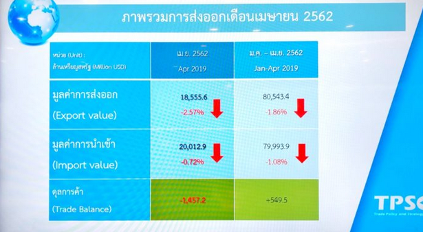 泰国官宣4月份出口数据,同比下滑2.57%。出口在创下24个月以来最低表现外,还将2019年前4月平均出口降幅拉低到1.86%。