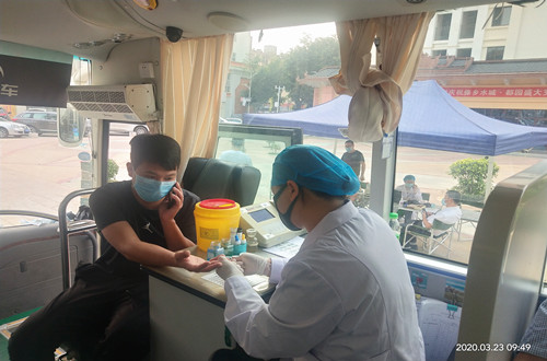 2月下旬以来,景阳公司以履行公民义务为光荣,以关心社会、关爱他人为己任,持续发出无偿献血倡议得到响应,本部14名党员报名参加。通过消毒、测量血压、体温,填写新冠肺炎疫情期间献血前健康补充征询登记表填表等程序,景阳公司工会副主席王景新,办公室主任徐小平等一行9人献血3300毫升。看着殷红的鲜血从手臂中不断流出,他们为自己可以为生命“加油”,挽救处于危急中的生命感到由衷的高兴。