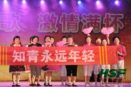 知青打出横幅“知青永远年轻”(孙亚军 摄影)
