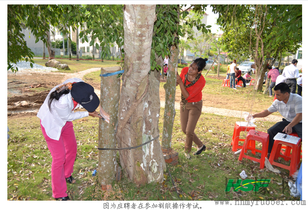 据悉,该分公司十分重视此次招聘工作。3月上旬做动员并下发招聘文件,明确应聘考试项目即理论(占总分20%)和割胶操作(占总分80%),割胶操作考试评分设现场组(评分项目为切片数和速度)和场外组(评分项目为深浅度、耗皮、割面、割线、下刀、收刀、切片均匀度、伤口);同时规定应聘者除了分公司在线人员外,应聘者文化程度达到初中以上,男的年龄为18岁至45岁、身高1.60米以上,女的18岁至35岁、身高为1.55米以上。经过严格审查,172人于4月2日~3日参加了应聘。(简日明 李永万)